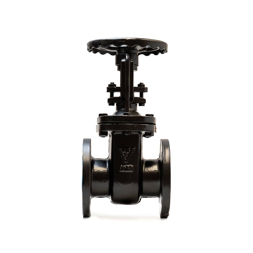 Válvula esclusa, bonete abulonado, vástago ascendente, apta para reempaquetar bajo presión, asientos renovables, Cuerpo en Fundición Gris ASTM A126. Internos en Bronce
